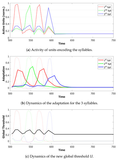 The variable is a specific threshold for unit i in state k, varying with time constant , and intended to model adaptation, i.e., synaptic or neural fatigue specific to the neurons active in state k. The field that the unit i in state k experiences is