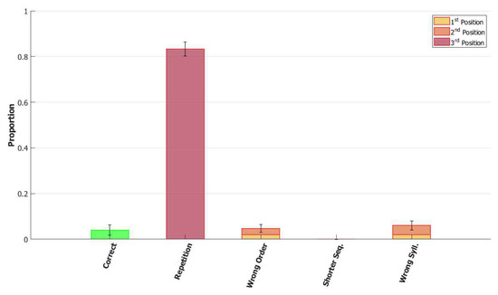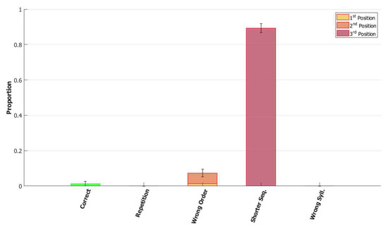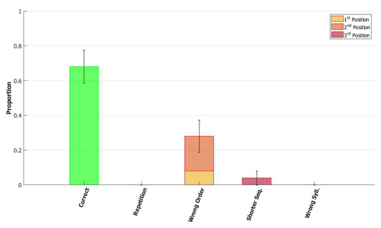 Considering a smaller but comparable span between signs and words, similar effects reported for phonological WM mechanisms in signers and speakers, and some similarities in the phonological representations between the two modalities, one would expect that these mechanisms will also exhibit similar patterns in the cases of breakdown. [54,55,85] investigated the pattern of errors in native signers of Israeli Sign Language (ISL) who had Low Output Phonological Spans (Loops) in serial recall. The participants repeated lists of unrelated signs of different types, including simple lexical signs, compounds, and non-signs. The Loops made significantly more phonological errors than the control group in repetition of morphologically simple lexical signs within ISL sentences, and in repetition of morphologically simple non-signs. The phonological errors were mostly substitutions handshape (63%), but also of location (31%) and movement (7%). Many of these errors (54%) in the non-sign repetition test could be explained by migrations of sign-elements from neighboring signs—either from the same list or from the previous list. As discussed in Section 1, the functions of the POB include both storage of the phonological information and composition of the phonological units. In repetition of existing words/signs, the POB is supported by a long-term store, the POL, which stores the phonological information of familiar words/signs. However, in the repetition of non-words/non-signs the POB cannot be supported by the POL, and the phonological units stored in the POB are more susceptible to errors in storage and composition [86,87]. Thus, it is expected that the migration of units from neighboring words/signs would occur. [11] showed a very similar pattern of errors in reading pairs of words in a spoken language, Hebrew, where once the load exceeds the capacity of the POB, individuals make a large number of migrations of phonological units between neighboring words. A recent analysis of (spoken) non-word repetition data obtained by [88] in Hebrew speakers also revealed similar pattern of errors, with 65% of the errors explained by migrations within the word or from neighboring words (including transpositions, substitutions, and insertions of neighboring phonemes).