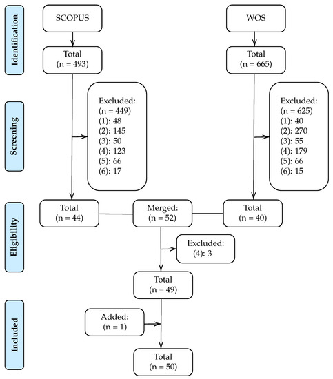 - Moher, D.; Liberati, A.; Tetzlaff, J.; Altman, D.G. Preferred reporting items for systematic reviews and meta-analyses: The PRISMA statement. Ann. Intern. Med. 2009, 151, 264–269. [Google Scholar] [CrossRef] [PubMed]