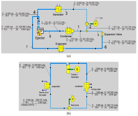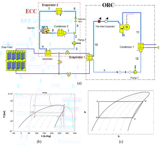 37]. New combined ERS with ORC were studied, and it was found that the power needed to drive the compressor could be decreased, and the system COP increased [