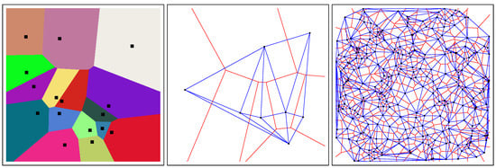 - Aurenhammer, F. Voronoi diagrams: A survey of a fundamental geometric data structure. ACM Comput. Surv. (CSUR) 1991, 23, 345–405. [Google Scholar] [CrossRef]