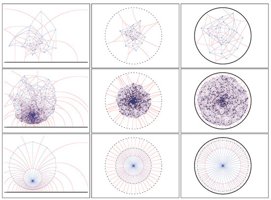 - Bogdanov, M.; Devillers, O.; Teillaud, M. Hyperbolic Delaunay complexes and Voronoi diagrams made practical. In Proceedings of the twenty-ninth Annual Symposium on Computational Geometry, Rio de Janeiro, Brazil, 17–20 June 2013; pp. 67–76. [Google Scholar]