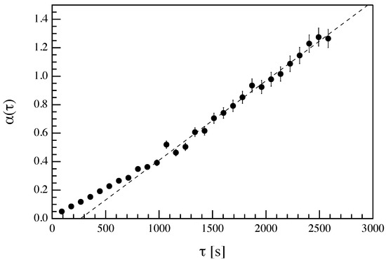 This expression is, indeed, not in contrast with Equation (4) because that equation is expected to be valid in the asymptotic limit. Figure 8 clearly shows that for timescales longer than s a linear dependence of on is found. Since we are interested in the asymptotic behavior, we perform a linear fit of for large values of (>900 s) and we obtained: km−1 K−1 and km−1 s K−1.