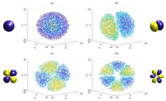 Eigenfunctions of the Schrödinger equation associated with the hydrogen atom computed by applying kernel gEDMD to the corresponding Koopman generator. The quantum numbers are: (a) and (b) .