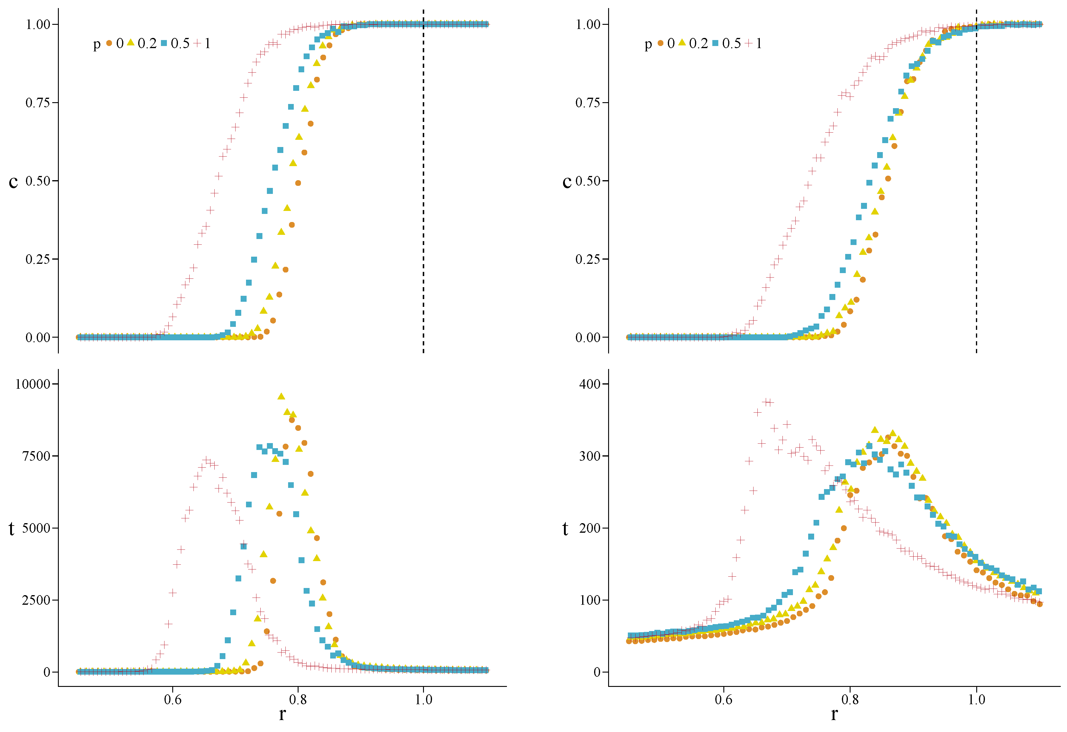 Appendix A. Simulations for Further Values of the Initial Fraction of Cooperators