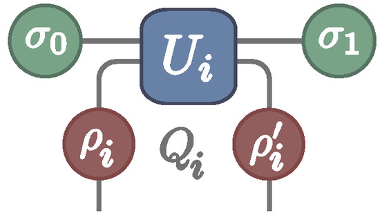Taking the partial trace over then leads to the updated state . Conversely, tracing over the system leads to the reduced state of the ancilla after the interaction (Figure 1).