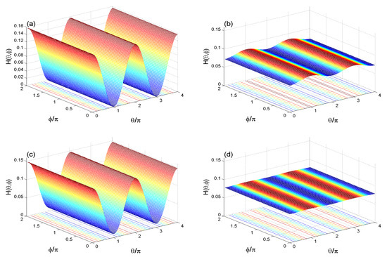 The HD is a tool to investigate the phase space information for a spin system. Here, we take two -spins (two-exciton system). The phase space information is determined by the angles and [37]. The loss of information means that the HD is invariant in the phase space, and thus it is an inductor of the mixture.