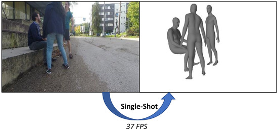 Given a single red, green, and blue (RGB) image, our goal is to reconstruct the 3D shapes of multiple persons in a single-shot fashion. Our single-shot method can process images at about 37 frames per second.