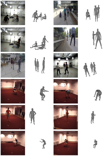 - Mehta, D.; Rhodin, H.; Casas, D.; Fua, P.; Sotnychenko, O.; Xu, W.; Theobalt, C. Monocular 3d human pose estimation in the wild using improved cnn supervision. In Proceedings of the International Conference on 3D Vision (3DV), Qingdao, China, 10–12 October 2017; pp. 506–516. [Google Scholar]