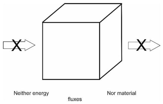 Closed systems have boundaries which are open to and may receive or exchange energy fluxes. At the same time, the materials potentially enclosed in the system at initial conditions must remain constant. Meanwhile, this still leaves the possibility of the elements to be structured or (self-)organized in various, more or less “sensible” ways according to other physicals laws, like in it is the case with some physical systems like the advective Bénard-cells mentioned in the text.