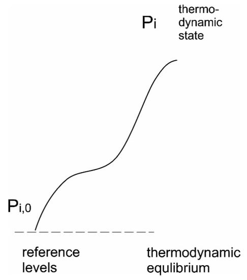 The following text is not going to be a compendium in thermodynamics. Only this section serves to give a short introduction to the perspectives considered to be relevant to the science of ecology. For deeper knowledge in this area we shall refer to the following [,,,,,,,,,,,,] and the theses’ of Evans [], Wall [] and Kay [], respectively. For introductions to the importance for biology and ecology as reflected in this paper, please refer to Allen [], Ebeling et al. [,], Garby and Larsen [], Morowitz [,], Müller and Nielsen [] and Jørgensen [].