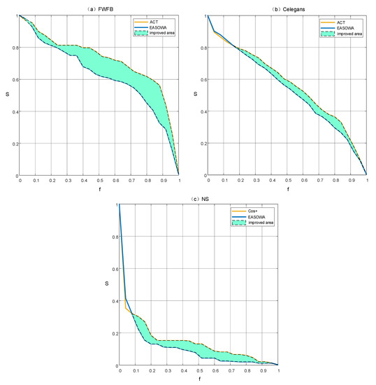 The results in Figure 7 show that the edge attack strategy based on OWA operator integration can improve the effect of disintegration on a single network. We find that the curves of declines faster than a single similarity index, especially in the two networks of FWFB and NS. The area between two curves in each subgraph demonstrates the improvement of the effect of network disintegration due to the OWA operator.
