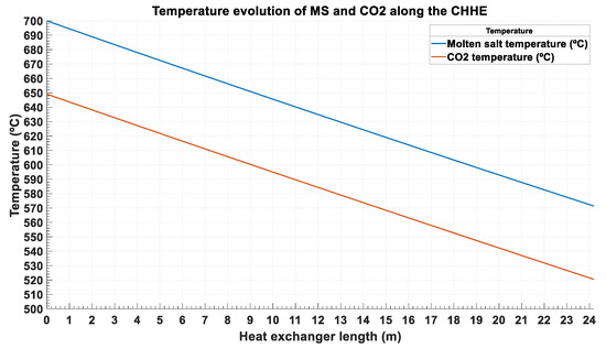 Temperature evolution of the ternary chloride molten salt and the CO2 along the CHHE.