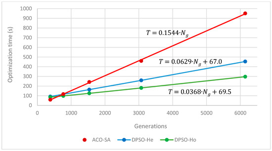 The results achieved by the proposed ACO-SA algorithm significantly outperform the results of the four other metaheuristic approaches based on ant colony optimization or discrete particle swarm optimization. From the time point of view, for the small and medium problems, the time needed for optimization is comparable with these methods; this is true even for large problems with low numbers of generations. However, for large problems with higher numbers of generations, the time needed for optimization is longer than in the case of rival methods. This is caused by the quadratic dependence of the ACO-SA algorithm on the problem size. Because of the time as well as memory reasons (memory requirements are also quadratic dependent on the number of vertices), the proposed ACO-SA algorithm is not suitable for very large problems where .