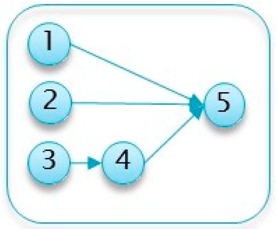 To search for the optimal inspection protocol, conventional project details are required as inputs, i.e., the project’s activities and their characteristics, such as ID, list of predecessor activities, minimal duration, maximal duration, and most likely duration (provided in the case of a beta distribution). In such an implementation, the project and activity details are provided in a tabular format, as shown in the example detailed in Table 1. This project is used as an illustrative running example throughout this section to explain and demonstrate the various algorithm steps. A network diagram depicting this example project is presented in Figure 2.