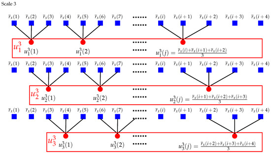 Step 2: Construct coarse-grained time series from the series and with the scale factor , respectively. Then we get and . Each point of the k-th coarse-grained time series at a scale factor of is defined as