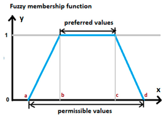 The criteria and limitations represented by fuzzy sets can be approximated by a simple trapezoidal function defined by giving four numbers (Figure 1) [35].