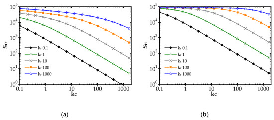 In Figure 1, a distinct increase of entropy produced with the reaction rate constant, kr, is observed. Conversely, entropy decreases with the mass transfer coefficient, kC (due to heat, SH, and mass, SD, transfer). A rapid chemical reaction (i.e., high kr) generates intense mass transport of substrates to the catalyst surface and adequate heat transfer in the opposite direction. The faster the reaction, the further the process runs from the equilibrium. When the transfer coefficients are small compared to the reaction rate, the concentration and temperature gradients are large, and even the substrates concentration on the catalyst goes to zero. Entropy production is large, being proportional to the square of the driving force (concentration or temperature gradient, cf. Equation (10)).