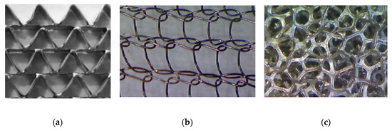 Catalyst supports: (a) triangular short-channel structure, (b) wire gauze, and (c) nickel chromium foam.