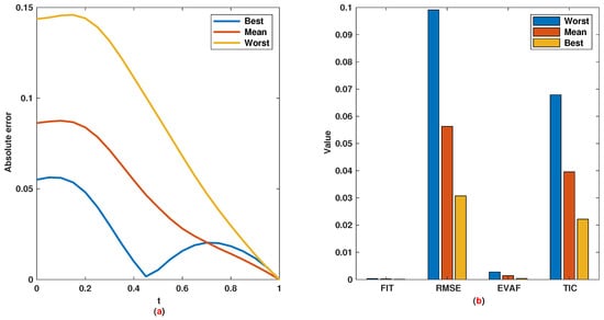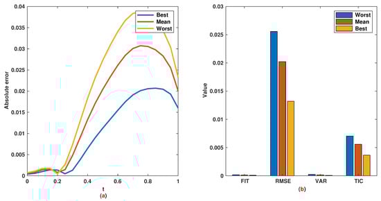 Example 1: (a): Absolute error; (b): The values of FIT, RMSE, VAR and TIC.