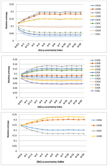 The same could apply to the QC pair C41F and C41J. For example, the evaluation of complexity associated with the MAR in TC C41 would only necessitate information of seven QCs in place of nine QCs. This could reduce the computational burden. In comparison with WR90 and WR2012, WR2005 depicted a relatively higher number of identical q-information deviation curves. With reference to the Tsallis entropic fundamentalism, this could yield to more QCs displaying approximately similar behaviour in terms of the dynamic change of water resources within the same data set.