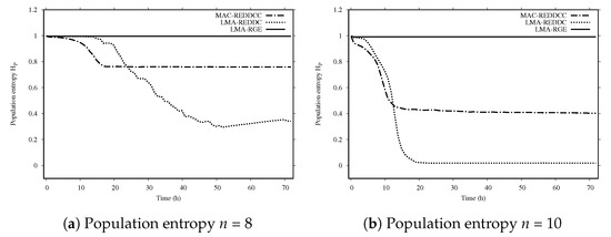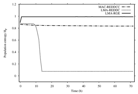 Population entropy for MAC-REDDCC, LMA-REDDC and LMA-GRE when coupled with an algebraic-based initialization.