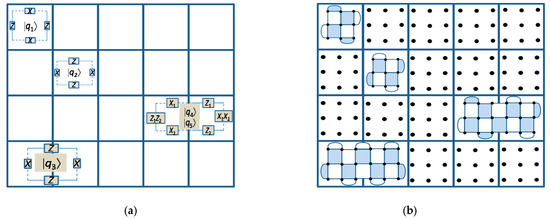 - Horsman, C.; Fowler, A.G.; Devitt, S.; Meter, R.V. Surface code quantum computing by lattice surgery. New J. Phys. 2012, 14, 123011. [Google Scholar] [CrossRef]