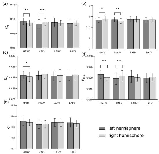 | Small-world property (σ) | represents the normalized clustering coefficient. represents the normalized characteristic path length. | |