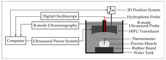 High-intensity focused ultrasound (HIFU) has strong penetrability and focusing capability. As a noninvasive modality for conducting high-temperature thermal therapy, HIFU can focus ultrasonic energy on a target region of the body to kill the cells in the treatment region []. In modern medicine, HIFU is often used to treat diseases such as cancer and tumors [,,]. Overtreatment will cause normal tissue to be damaged, so it is important to monitor whether the biological tissues have been denatured in the HIFU treatment region []. HIFU treatment monitoring has three kinds of monitoring methods, including computed tomography (CT) [,], magnetic resonance imaging (MRI) [,], and ultrasound [,]. However, CT may damage the human body in HIFU monitoring, especially the elderly and children. MRI is also limited due to poor real-time performance, high price, and poor equipment magnetic compatibility. Ultrasound has become a research hotspot for HIFU treatment monitoring due to low cost, good real-time performance, and compatibility with hyperthermia devices [,]. For example, the ultrasound techniques of quantitative ultrasound, ultrasound elastography, and ultrasound entropy imaging are employed to monitor thermal ablations [,,].