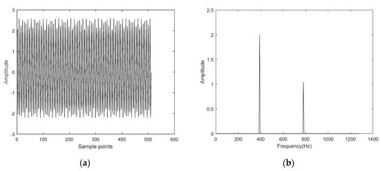 Time-domain diagram and frequency spectrum of the simulated signal. (a) Time-domain diagram; (b) Frequency spectrum.