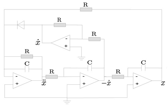 - Sprott, J.C. A New Chaotic Jerk Circuit. IEEE Trans. Circuits Syst. II Express Briefs 2011, 58, 240–243. [Google Scholar] [CrossRef]