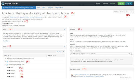 It is possible to find at least 35 works [57,58,59,60,61,62,63,64,65,66,67,68,69,70,71,72,73,74,75,76,77,78,79,80,81,82,83,84,85,86,87,88,89,90,91] in the Entropy journal that relate chaos theory in different areas; however, there are only five articles, from all areas, where reproducibility was mentioned [92,93,94,95,96]. From those aforementioned papers, only Funabashi [95] presented some slight relationship with the reproducibility of nonlinear dynamics fields. In that paper, the author defined a conceptual model that incorporates the quality of observation in terms of accuracy and reproducibility; he devoted Section 2 to setting up scientific measures that should assure reproducibility. This notwithstanding, the principles are devoted to building models for a specific case of interactive data-driven citizen science, and there are no standard guidelines and involvement with the community of journals and scientists. Although in the literature, the concern for the reproducibility of results is growing and there is a considerable number of articles that address chaos and loss of information, it is still not possible to find in Entropy any work that directly links these two themes.