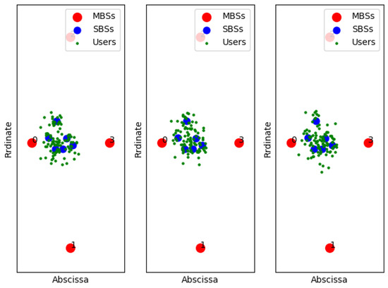 For a cluster sleeping method, Chang et al. [11] utilized a genetic algorithm to achieve dynamic matching of energy consumption and Li et al. [12] proposed a Gauss–Seidel method to optimize resources in HetNets. In [13], a low complexity algorithm based on the many-to-many matching game between the virtual SMSs, and the users were proposed to solve the problems of exponential growth of mobile data traffic and energy saving. Anany et al. [14] also utilized matching game and proposed an association algorithm which jointly considered the rate and power of each wireless device to get optimal association between the wireless devices and the best BSs according to a well-designed utility function. Wang et al. [15] modeled the location of each layer of BS as an independent Poisson Point Process (PPP) to analyze the coupling relationship between the probability of successful transmission and BS activation. Dong et al. [16] adopted the Poisson clustering process (PCP) method and analyzed the local delay of discontinuous transmission (DTX) mode. For correctly deploying and expanding HetNets to avoid co-channel interference (CCI), Khan et al. [17] proposed a new three-sector three-layer frequency division multiplexing technology (FFR-3SL). Tiwari et al. proposed a Bayesian minimum mean-square-error (MMSE)-based method to estimate user velocity in [18] and presented a handover-count based minimum-variance-unbiased [19].