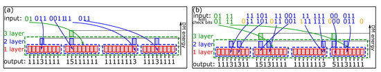 - The number of input bits to each layer, , is denoted as in References [9,12].