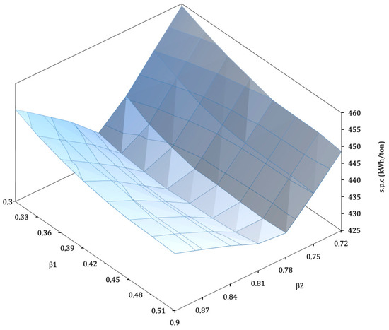 The resulting optimum and add up to 88% of the total mass flow in K-101. The results for SPC (kWh/ton of LIN) across the range of and studied are given in Figure 4.
