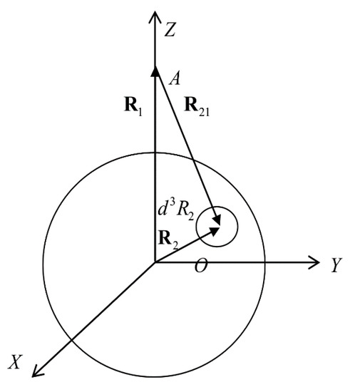 Figure 1 shows a droplet and atom at the point A. The radius vector indicates the location of the atom, interacting with the droplet, and radius vector indicates the location of the volume element. By introducing new integration variables via relation and using spherical coordinates for integration (Figure 1), we obtain the following expression for the atom–droplet interaction: