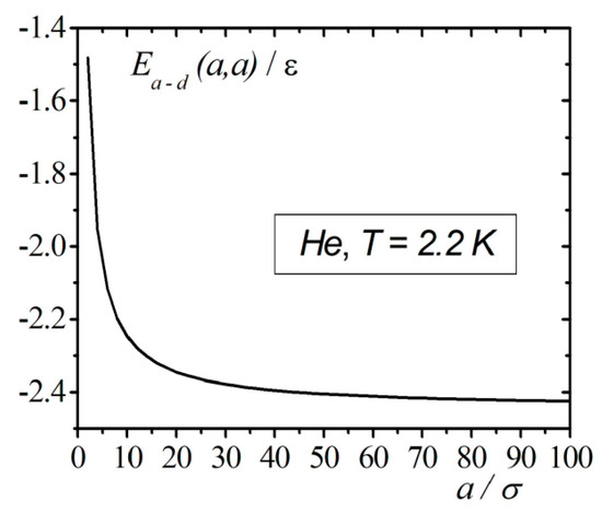 In contrast to the results of continual approximation, the interaction energy (11) is limited. In Expressions (4)–(11) for the interaction energy, the divergence of the corresponding integrals in the accounting for the paired interatomic correlations is absent.