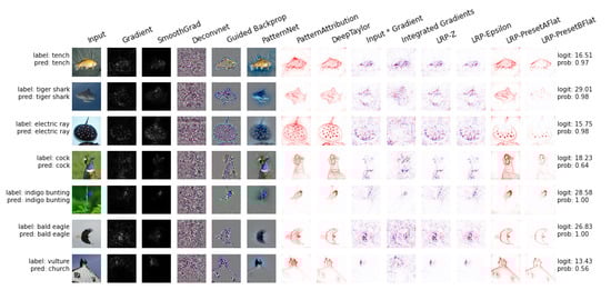 In Figure 3, a comparison of several interpretability methods for explaining deep learning models on ImageNet sample images, while using the innvestigate package, is presented.