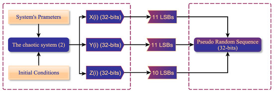 The flowchart of the proposed strategy for producing PRNG by the system (9).