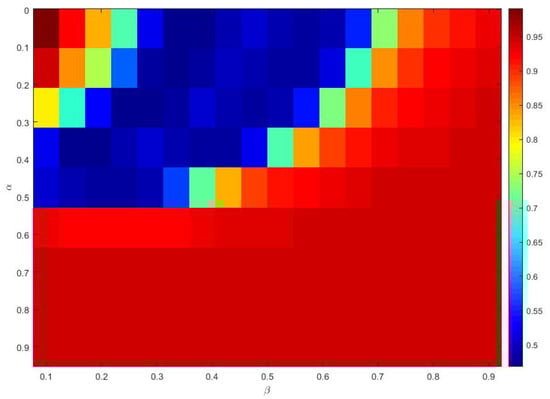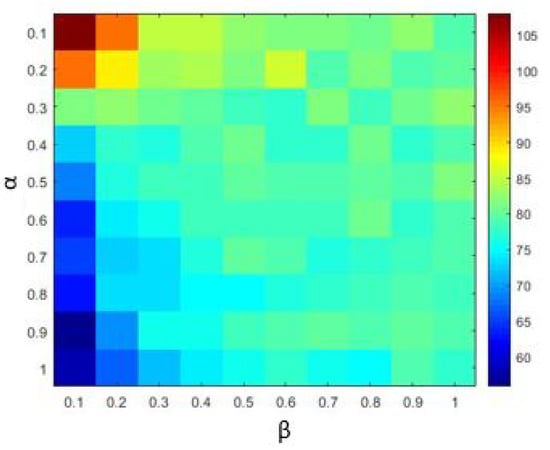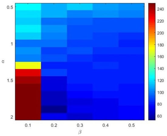 Similar to the parameter tuning for the regression model, parameter analysis was conducted to illustrate the impact of parameters on the optimization results and to offer reference values to the MNIST handwritten digit classification SCN algorithms. Corresponding experiments are performed. According to the experimental results, for the SCN-Lévy algorithm, the most optimal power law index is 1.6 to achieve the best RMSE performance (Figure 7). For the SCN-Cauchy algorithm, the optimal location parameter and scale parameter for the least RMSE are 0.2 and 0.3, respectively (Figure 8). The values of colorbar in Figure 8 represent for the RMSE.