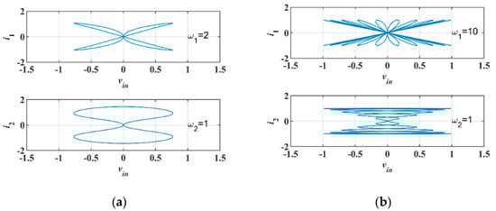 I-V curves with different frequency inputs: (a) , (b) .
