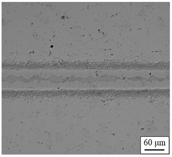 Already for the existing materials a number of fillers have been developed. The standard fillers, can be classified into two main groups depending on the microstructure, which results from two main approaches to achieving the goals. The fillers in one of these groups are based on precious metals (Au, Pd) and are usually solid solutions with additions of nickel and copper. These alloys derive their good oxidation resistance from the precious metal content, and often also show good mechanical properties at high temperatures [14], but, as discussed in Section 3, bring increased cost. The other approach produces a group of alloys based on nickel or nickel-chromium, which make use of alloy systems with eutectic compositions. These alloys normally see the addition of an element exhibiting a eutectic composition in the binary phase diagram with Ni (normally boron, silicon, or phosphorus), and thus acting as a melting point depressant (MPD). They have good corrosion resistance at high temperatures due to the chromium content, but the MPD element, which is necessary to reduce the melting point to a level where it can be used as a filler, usually results in the formation of intermetallic phases (borides, silicides, or phosphides), which can be brittle and may reduce corrosion resistance locally, in both the joint region and where diffusion into the base metal has occurred. In some approaches, extended high temperature treatments are used to disperse the MPD elements by diffusion; this dilutes the MPD effect, and thus imparts a high melting point in the joint. A typical joint between two superalloy pieces with this type of filler is shown in Figure 7.