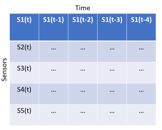 A CNN can be used in time series sensor data by transforming the data into a 2-dimensional tensor format by concatenating the individual signals from a sliding time window [