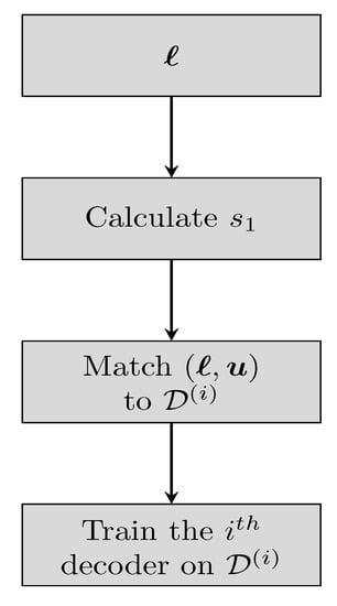 Let the number of trainable WCVA decoders in the WCVAE be , with each decoder possessing I repetitions. To form the experts, we first simulate many message words randomly, each message word is encoded and transmitted through the channel. The initial state of a transmitted word , known in training, is denoted by as before. Then, we add the tuple to the dataset representing the subset of states that include state :