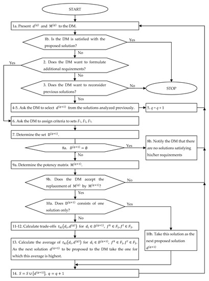 We define set S as a set that contains all the solutions proposed to the DM till now. This allows the DM to return to the solution considered in previous iterations if it is considered better than the current proposal. At the beginning of the procedure, set S is empty.