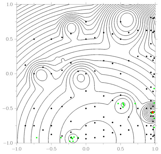 - Gaviano, M.; Kvasov, D.E.; Lera, D.; Sergeyev, Y.D. Software for generation of classes of test functions with known local and global minima for global optimization. ACM Trans. Math. Softw. 2003, 29, 469–480. [Google Scholar] [CrossRef]