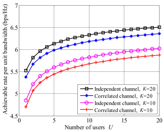 Achievable rate with the increased number of users U.