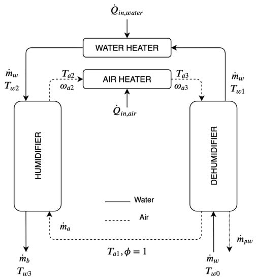 Schematic Diagram of a Dual Heated HDH Cycle.