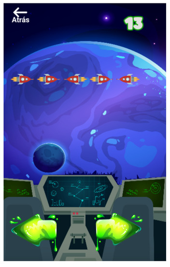Considering previous studies that prove the benefits of using SGADs for reducing the symptoms of children affected by ADHD and improving their executive functions [17,31], we decided to create a positive-reinforcement serious game [32] focused on cognitive training through a process-based approach, based on repeating different cognitive tasks belonging to various cognitive domains. The game, called Alien Attack, was designed using a user-centered design process to create an attractive, easy-to-use, and efficient SGAD.