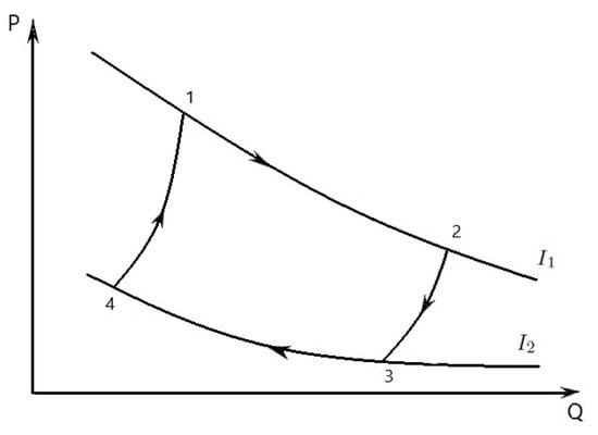 Economic Carnot cycle illustrated on a Q-P diagram to show the wealth done.